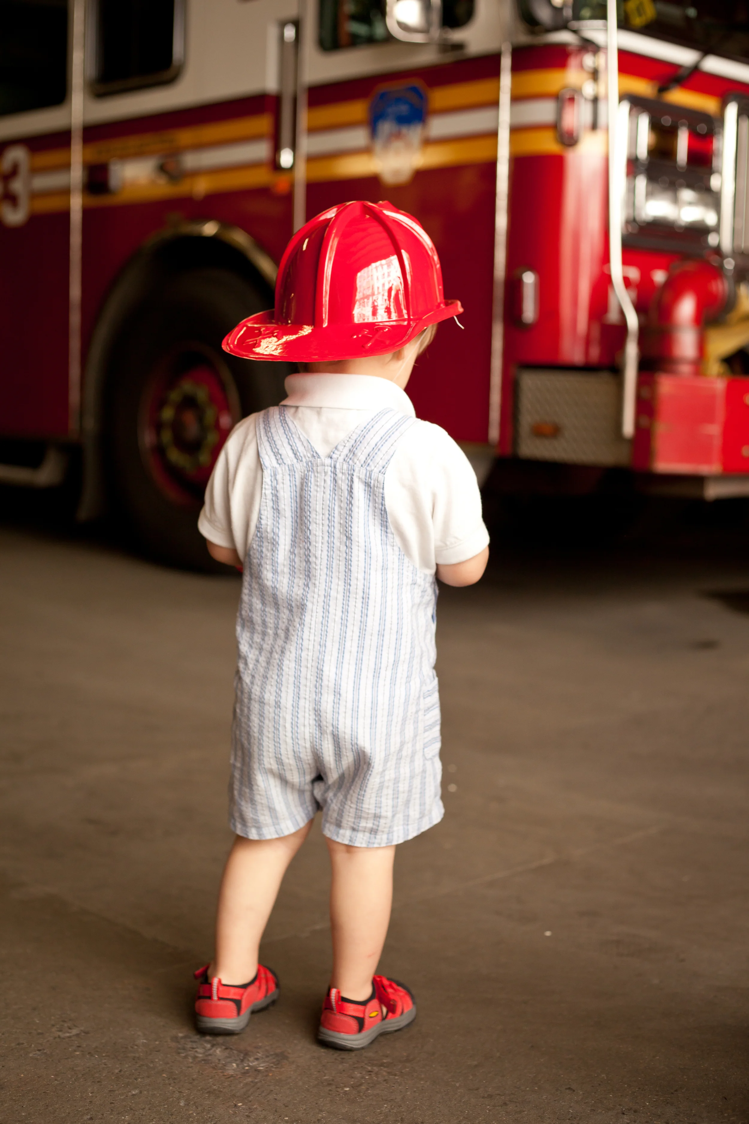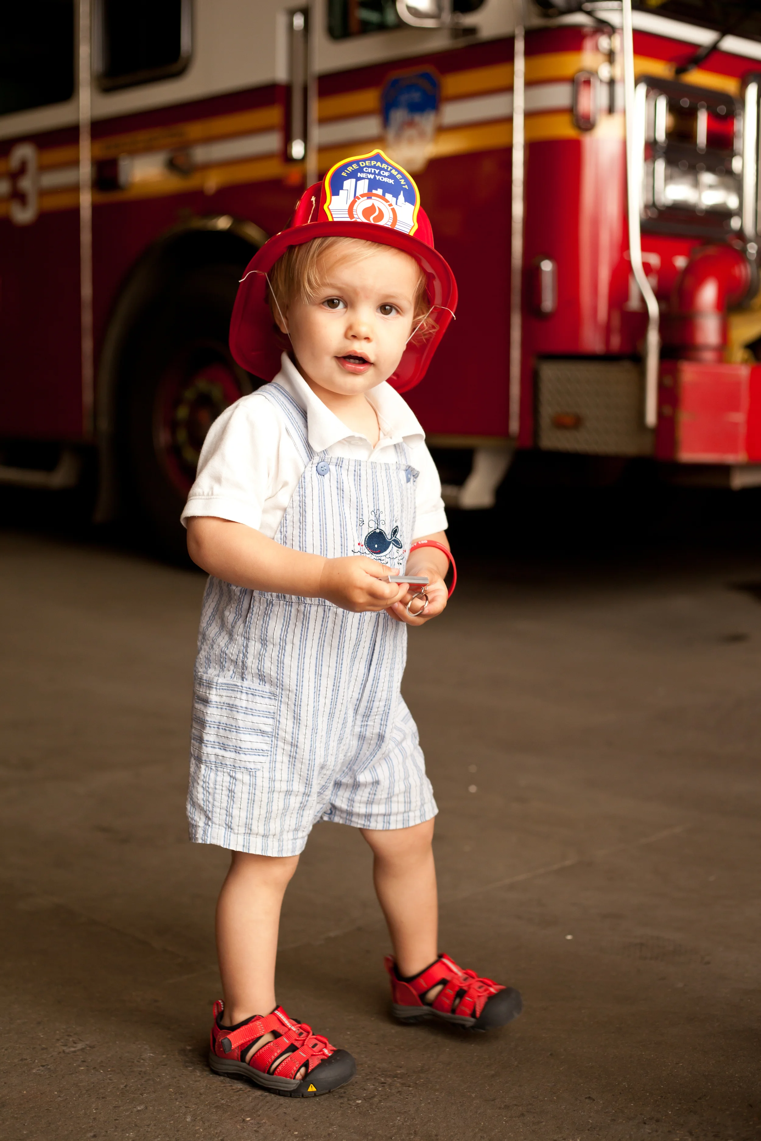 Living in New York City this little boy, like most little boys loves fire trucks or as he likes to call them, "Shireshrucks." So an actual fire station made the perfect back drop for this photo shoot.